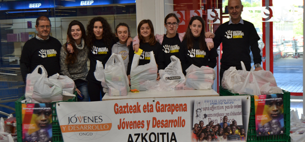 Euskadiko Jóvenes y Desarrollo – Gazteak eta Garapena janari bilketa egin du Azkoitian, gaur egun Benin eta Togo aldean dagoen gose handiari erantzun bat eman asmoz. Honako janariak bildu dira: arroza, dilistak, babak eta pasta… Ongi kontserbatzeen eta asko estimatzen dituzten janariak dira. Floreaga Ikastetxean eta hainbat dendetan jaso ditugu janariak abenduaren 5, 7, 13 eta 14an. Janariak sailkatzean, batez ere Patri familiak lan bikaina egin du. Gainera kartoizko kaxak inguratzeko Eibarko “Cartonajes Eibar S.L.” enpresak ere laguntza ederra eskaini digu. SPRI-Agencia Vasca de Desarrollo Empresarial taldeko kidea den Urolako Industrialdea, S.A. taldeak Ugarte Poligonoko lokal handia utzi digu gauzak bildu eta sailkatzeko.