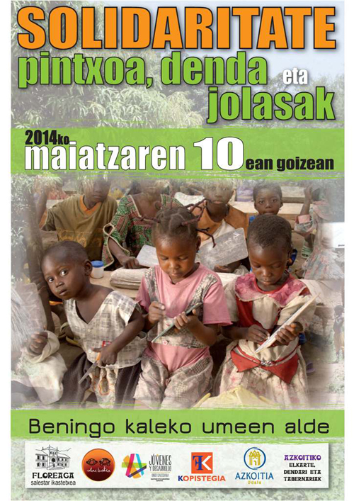 Azkoitiko Jóvenes y Desarrollo – Gazteak eta Garapena GGKE taldeak eta Alai Batzak, Beningo Porto Novo Kaleko umeen aldeko  ekintza hau antolatu du:  ELKARTASUN PINTXOA, BIGARREN ESKUKO DENDA eta  UMEENTZAT JOLASAK ETA TAILERRAK.