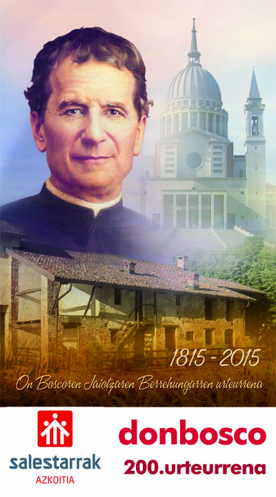 kartelaDon Boscoren figura inspirazio iturri da salestar munduarentzako. Bigarren mendeurren hau baliagarria izango da Don Boscoren garaiko gazteen erronkak, arazoak, beharrak eta itxaropenak aztertu eta gaurko gazteenekin konparatu ahal izateko. Horrela, Don Boscoren eredua jarraituz, gaur erantzun egokiak ematen saiatuko gara.