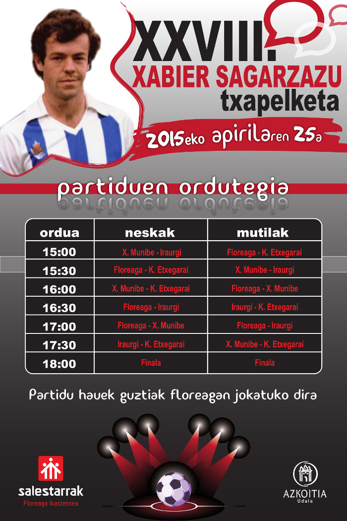 Datorren larunbatean, apirilaren 25ean jokatuko da XXVIII. Xabier Sagarzazu Txapelketa Floreaga Ikastetxean.