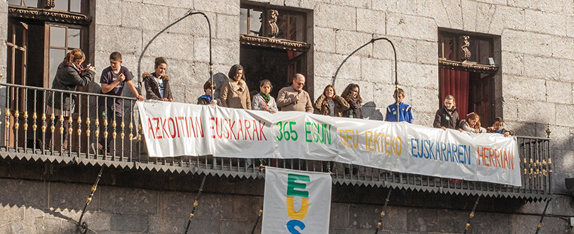 Goizean, plazan ere izan ginen. Xabier Munibekoekin batera, herriko puntu desberdinetatik abiatu ginen, trikitilariekin, txistulariekin, saltokoa, abestuz, olatuak eginez… Helmuga plaza genuen. Hantxe bildu ginen, guztiok batera! Guztiok euskararen alde! Momentu hunkigarria izan zen!