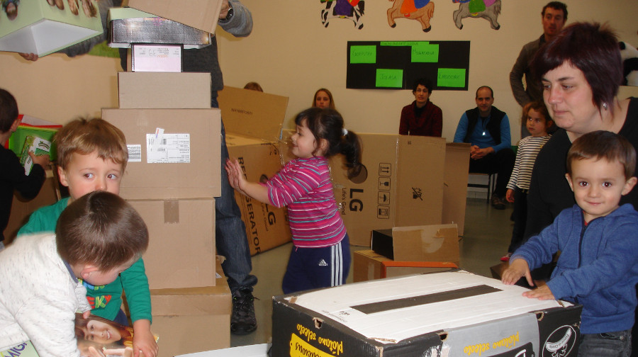 2015-2016 ikasturteko Elkar Haziko lehenengo saioa egin genuen larunbatean. Psikomotrizitate lodia kartoizko kaxen bidez landu genuen eta psikomotrizitate fina, sokak zulotxoetan sartuz.