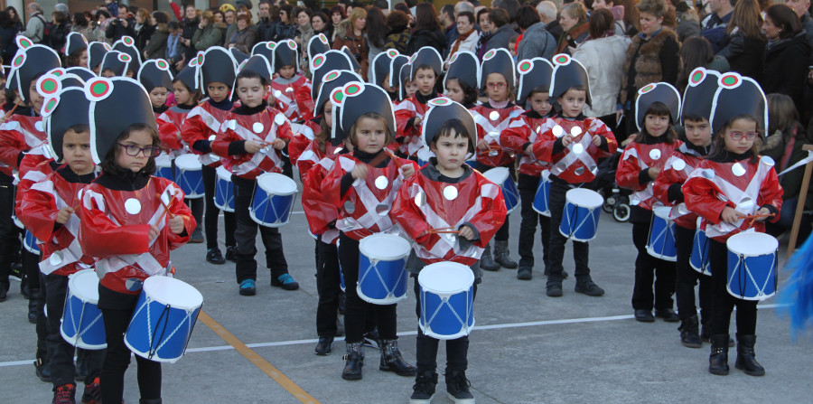 Festa lau eta erdietan hasi da, Haur Hezkuntza eta bi urteko haurrak goiko patioko frontoitik atera dira danborrak astinduz.