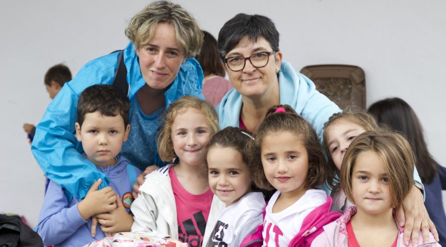 LHkoak 9etan agertu dira patio berdera. Urtero bezala Urrategira oinez igotzeko asmoa zuten, baina eguraldiak ez die lagundu eta autobusez igo dira. Guraso talde txiki bat ere gerturatu da, elkarrekin hasiera errazteko modu polita benetan.