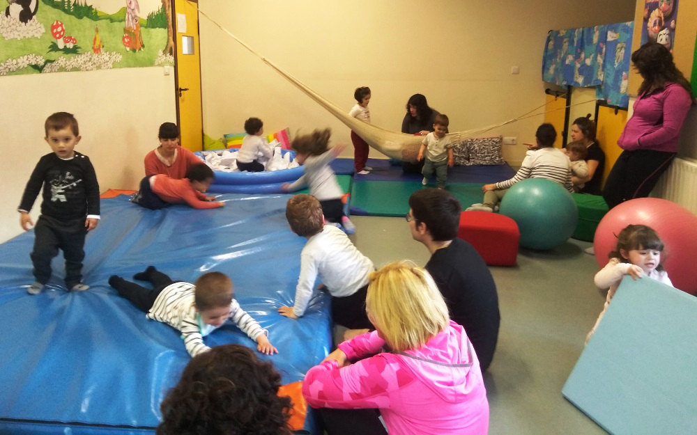 Larunbata, apirilak 14, psikomotrizitate saioa burutu genuen giro ederrean. Izerdi mordoa atera zuten haurrek gora, behera, txuta, salto, kuku eta besarkada artean. Ipuintxo batekin erlaxatu ginen amaieran.