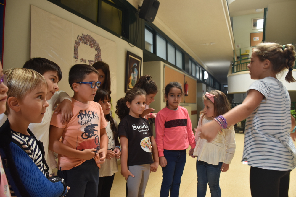 Bestetik, urteroko ohiturari jarraituz, LH5eko ikasleek, eraikinera heldu berri diren LH1eko txikiei, ikastetxeko leku desberdinak aurkeztu dizkiete: gela desberdinak, patioak, komunak… LH5koek orain dela urte batzuk jaso zutena, txikienei transmititzeko ordua iritsi zaie.