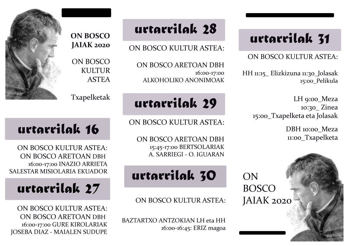 ON BOSCO JAIAK 2020 2020-01-23 Idazlea: DBH Floreaga Leave a Comment Hona hemen On Bosco asteko egitaraua!