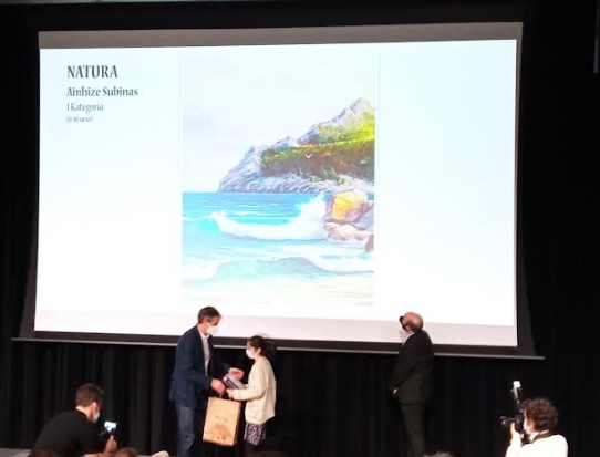 Lehenik eta behin ZORIONAK Azterkostako aurtengo lehiaketako irabazlei, Ainhize Subinas eta Joanes Karrera.