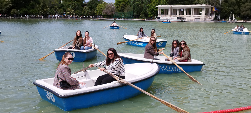 Bigarren eguna hiria ezagutzen igaro genuen. Goizean Santiago Bernabeu futbol estadioa ikusi genuen. Zelaia ezin izan genuen zapaldu, hurrengo egunerako kontzertu baten prestaketa lanengatik “gordeta” baitzegoen. Bai, gordeta! Birmoldaketaren ondorengo berrikuntzetako bat da, lur azpian gordetzen da. Eguardia El Retiroko parke ezagunean pasa genuen: bazkaldu, txalupa eta kart-ean ibili, deskantsatu… Gero erdigunetik zehar paseatu genuen (Cibeles, Puerta del Sol, Plaza Mayor, Gran Vía…) eta azkenik autobusa hartu eta Xanadu merkatal gunera joan ginen afaltzera.